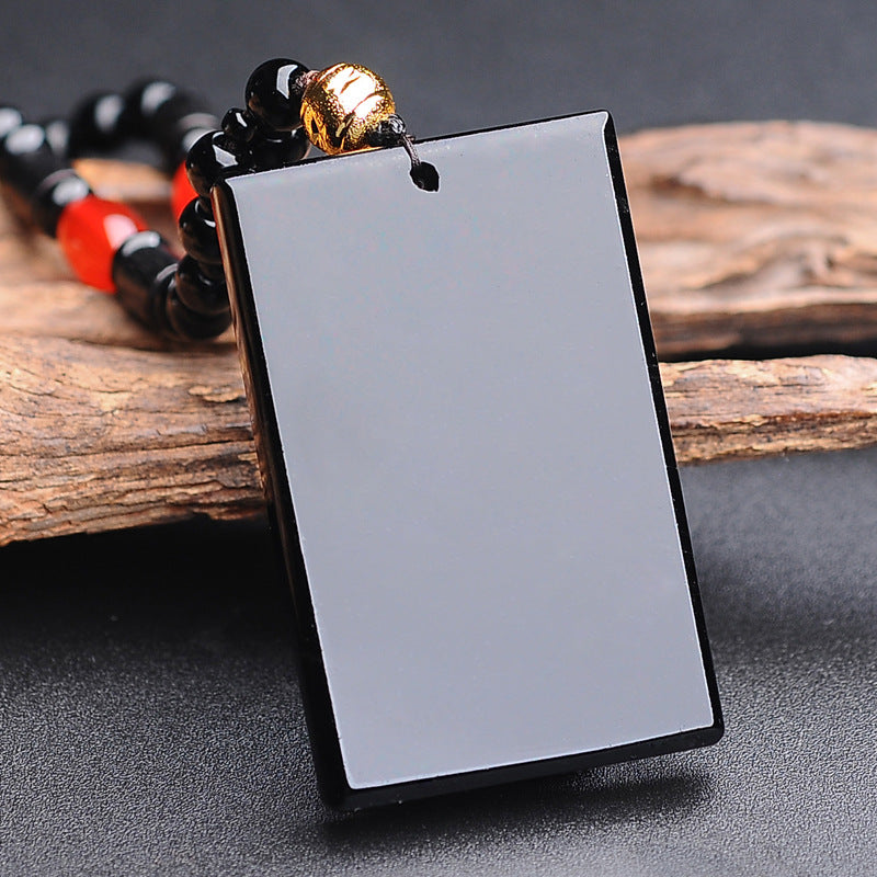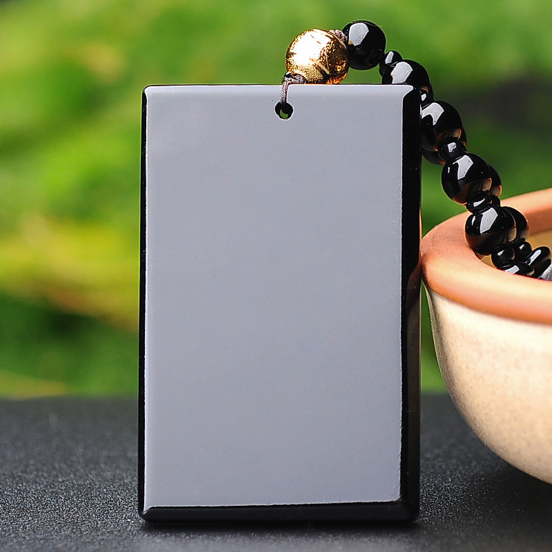 Embrace profound peace and ultimate energetic protection with our Natural Black Obsidian Minimalist Pendant. Crafted in the traditional Chinese "Wushi Pai" style, this pendant features a perfectly smooth, uncarved rectangular plaque. In Eastern philosophy, the absence of intricate carvings ("Wu Shi") phonetically translates to "No Trouble" or "Peace," symbolizing a life free from worries, obstacles, and hardship.